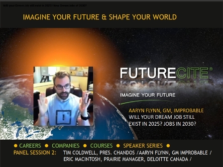 Will your dream job still exist in 2025? What about new dream jobs for 2030? What will the dream jobs of GENXYZ who may not have a tech pathway look like if their passions are in the arts or communications? For Aaryn’s full discussion with panelist Tim Coldwell, President of Chandos Construction, and moderator, Tim McIntosh, Manager Higher Education of Deloitte Canada, as to what “interchangeability of future careers” will look like, see FutureCite Speaker Series FutureCite Speaker Series: Panel Session 2: Will Your Dream Job Still Exist by 2025?
