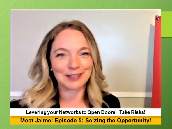 In Episode 5 Jaime shares how the need to take a risk by putting herself out there – got her to lever her networks to help her to open doors!  As she says, you never know what’s possible unless you ask!
